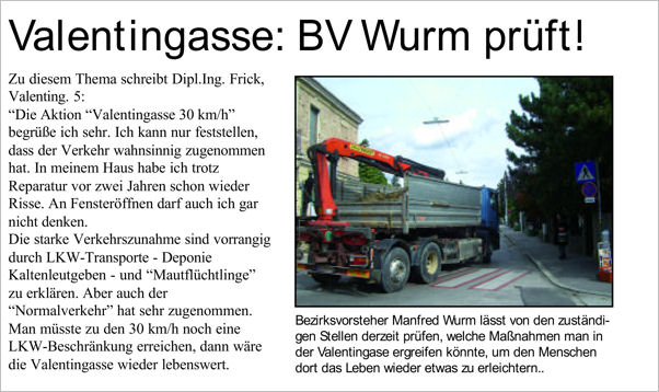 Fragen und Stellungnahme dazu von Bezirksvorsteher Manfred Wurm zum Thema